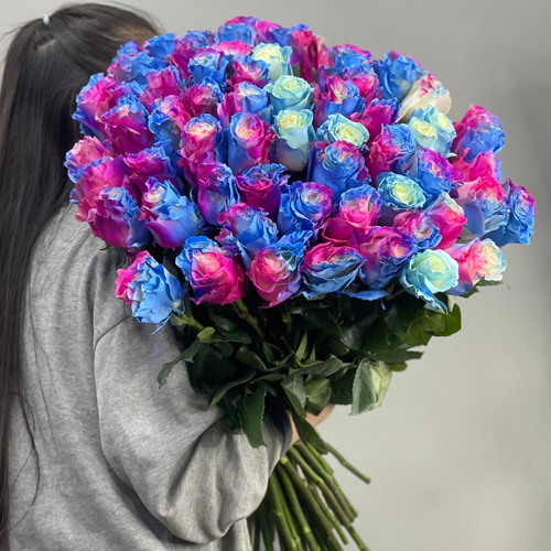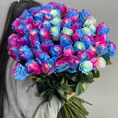 Букет "Радуга" из 51 розы Эквадор под ленту (70 см)