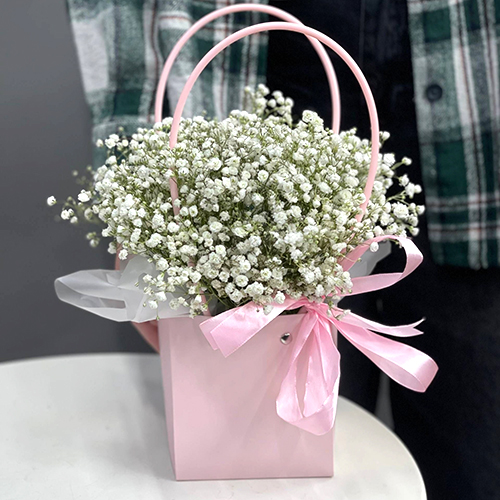 Композиция в сумочке из гипсофил